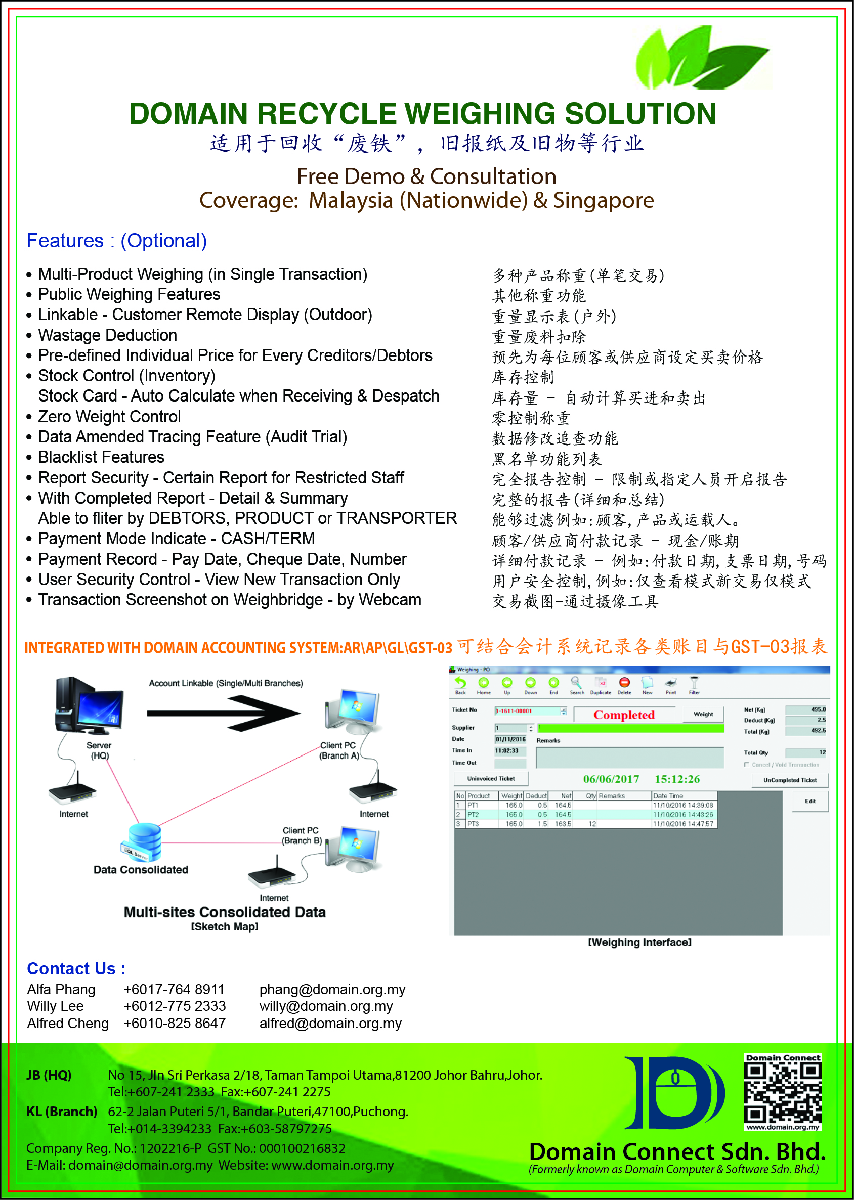 Alfred Cheng Tel: +6010-825 8647 Email: alfred@domain.org.my